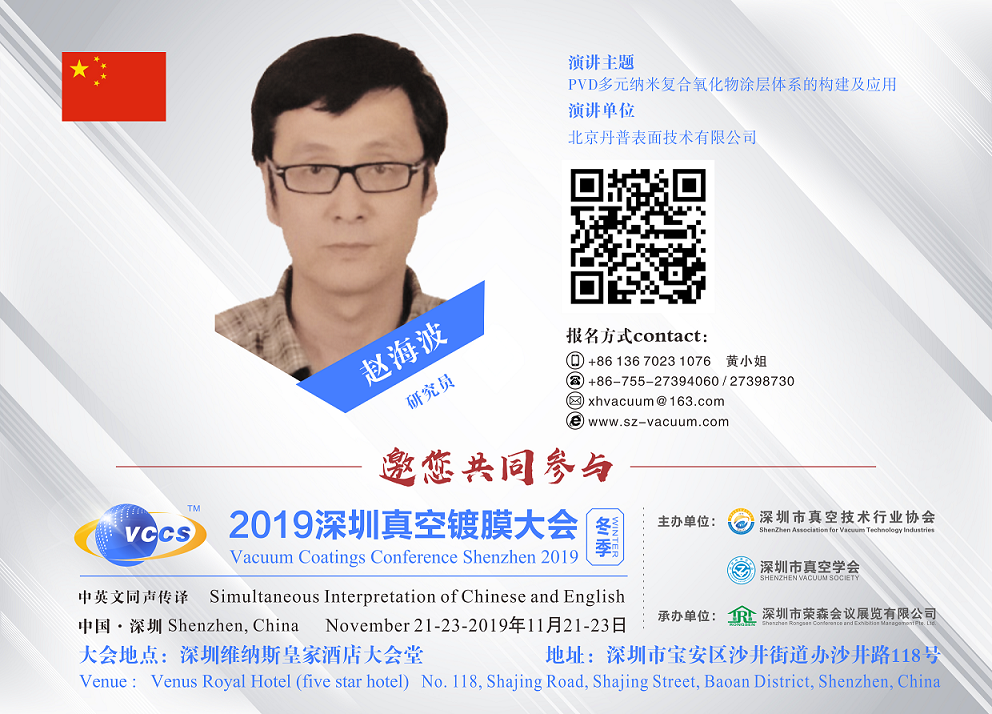 北京丹普表面技術(shù)有限公司也受邀將參加這次大會并派人做專題演講,在大會23日(9:40-10:20)的技術(shù)報(bào)告會議上,我公司趙海波研究員將做名為《PVD多元納米復(fù)合氧化物涂層體系的構(gòu)建及應(yīng)用》的專題演講,公司展位S18,屆時(shí)歡迎各位領(lǐng)導(dǎo)及行業(yè)同仁前來指導(dǎo)工作。
