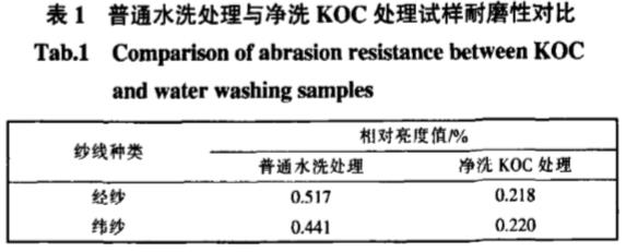 采用質量濃度為2g/L的凈洗KOC溶液處理試樣,其相對亮度值變化如表1所示。