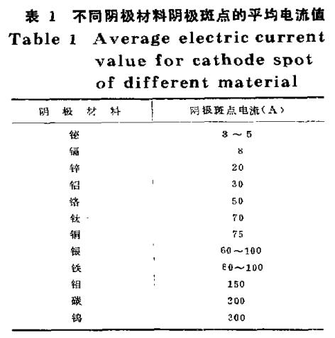 多弧靶源的真空電弧放電其電弧電流是由靶面上的陰極弧斑提供的,對某一材質的陰極靶來說,陰極斑點上所能承受的電流值是一定的,表1列出了不同陰極材料陰極斑點的平均電流值。陰極斑點數與電弧電流值成正比。隨著電弧電流的增加,陰極斑點的數目也增加,且相互獨立的運動。圖8給出了幾種材料的陰極斑點數與陰極電弧電流間的關系曲線。假定因某種原因造成某個弧斑熄滅,但其余的弧斑仍然正常燃燒并很快分裂恢復原來的電流值和弧斑數目,使電弧得以穩定燃燒。所以電弧電流越大,電弧斑點數就越多,滅弧的可能性就越小。